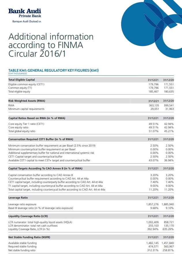 Additional information according to FINMA Circular 2016/1 - 2021