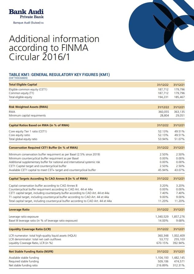 Additional information according to FINMA Circular 2016/1 - 2022